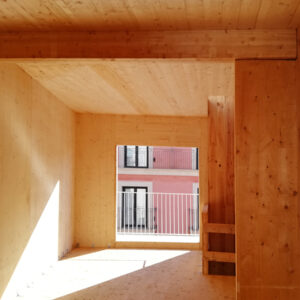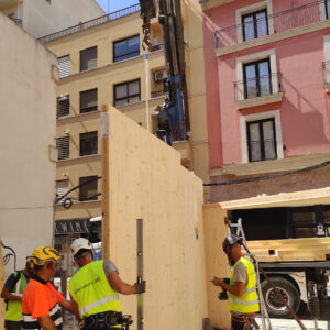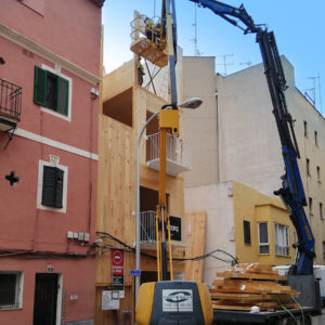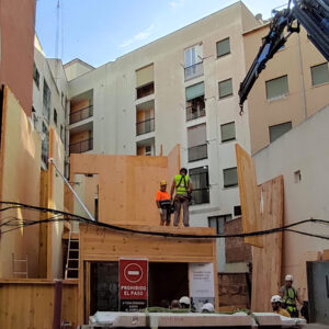 Edificio de cuatro plantas en CLT en Palma de Mallorca. La edificación, entre medianeras, ubicada en el centro de la ciudad consta de tres plantas más baja.