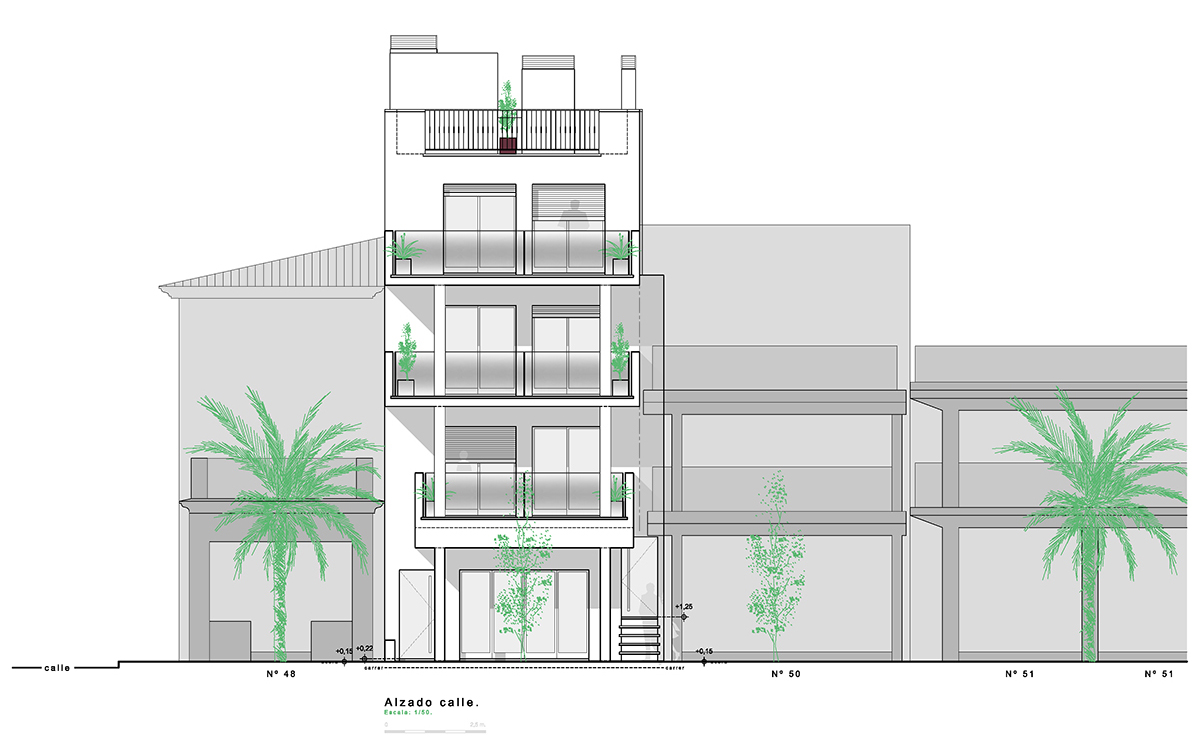 Superficie construida: Edificio de 4 plantas de 485 m².