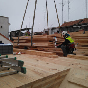 • Suministro y montaje de la estructura y otros elementos de madera en bruto.