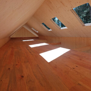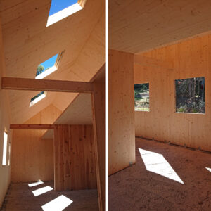 El acabado visto de los paneles al interior confiere ya, desde la primera fase de obra, un ambiente especialmente acogedor a todas las estancias.