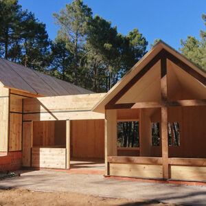 Una estructura en panel contralaminado que nos recuerda que una arquitectura más tradicional también es posible con sistema CLT.