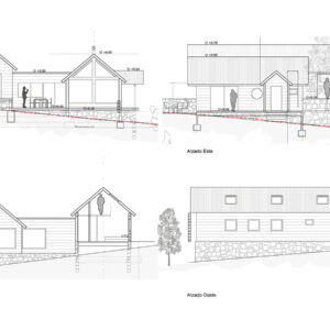 Proyecto de vivienda unifamiliar compuesto por dos volúmenes claramente diferenciados por sus lógicas cubiertas a dos aguas en las que se garantiza, con gran sencillez, una buena evacuación de la lluvia y la nieve que la vivienda seguramente va a recibir a lo largo de su vida útil. El tercer volumen, en este caso con cubierta a un agua, hace de nexo central creando un espacio de transición entre la zona de día y la de noche.