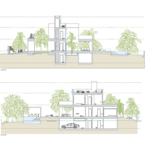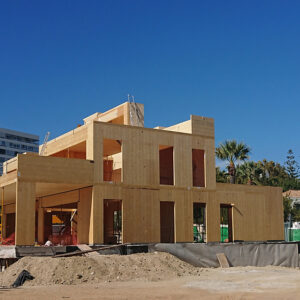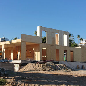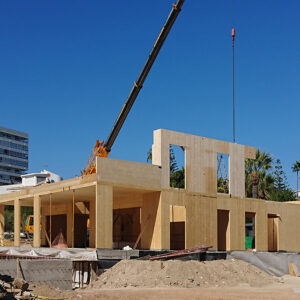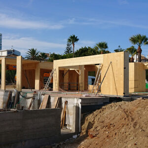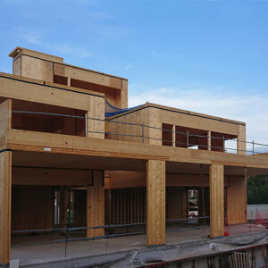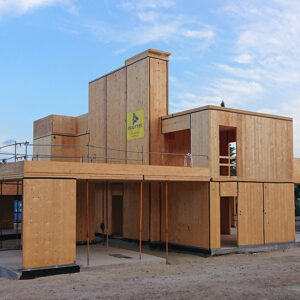 Se trata de una vivienda unifamiliar de 3 niveles sobre rasante. La estructura realizada en panel contralaminado se compone de planta baja y porche, mas planta primera y terraza, y un casetón de cubierta que da salida a una azotea donde se incluye un espacio para jacuzzi desarrollado completamente en madera contralaminada.