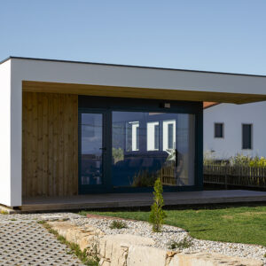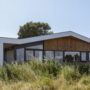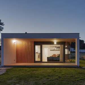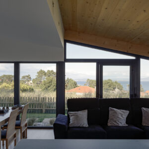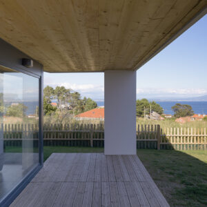 En esta vivienda la estructura se ha ejecutado íntegramente en panel contralaminado CLT, conformando un cuerpo compacto que ha contribuido a mejorar el comportamiento térmico de la envolvente hasta reducir el coeficiente de transmisión térmica, aportando además una mejor calidad ambiental gracias a su transpirabilidad y buen comportamiento higrométrico.