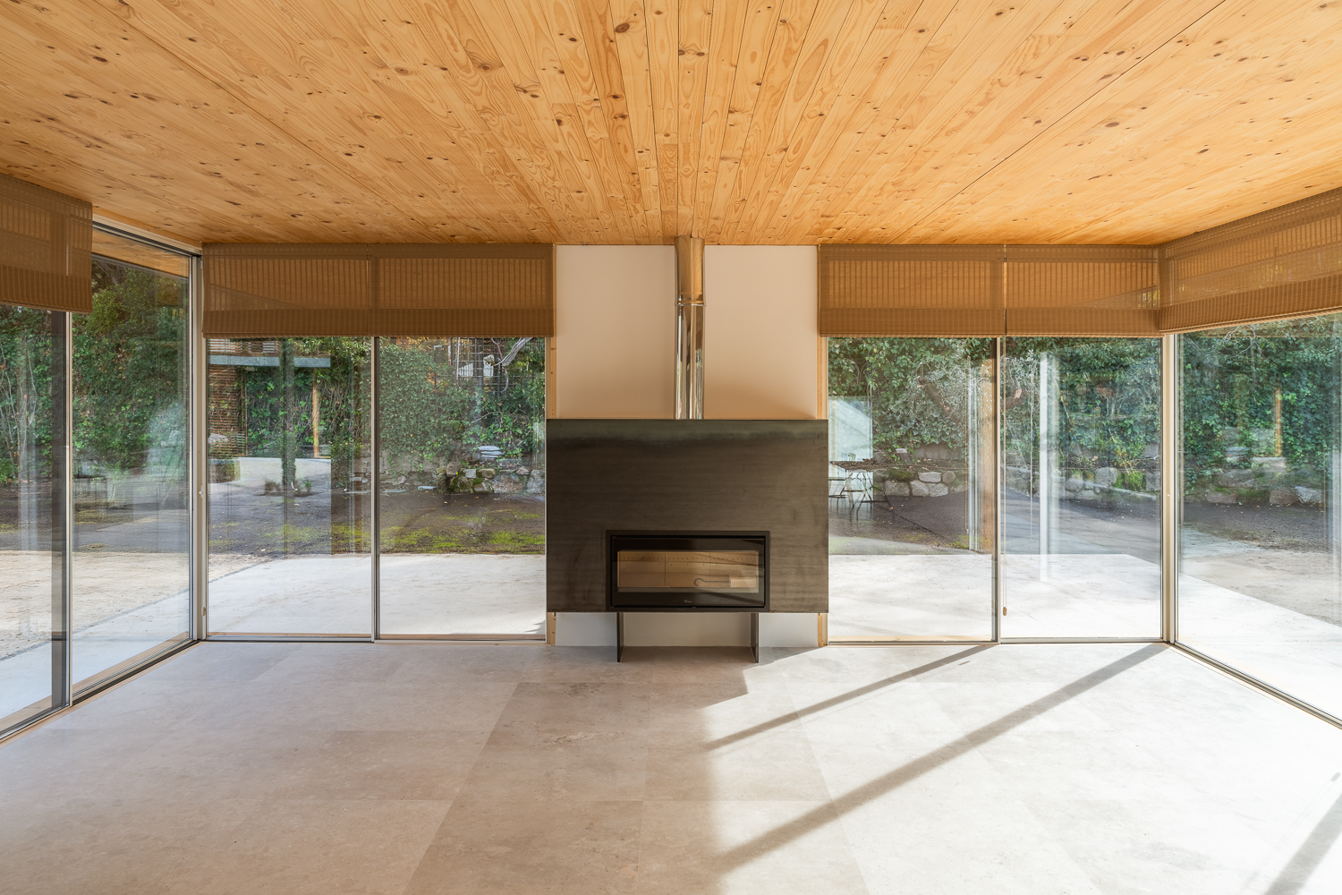 El interior no tiene que ser obligatoriamente de madera, se puede revestir con yeso laminado, plaqueta cerámica, papel pintado, etc.